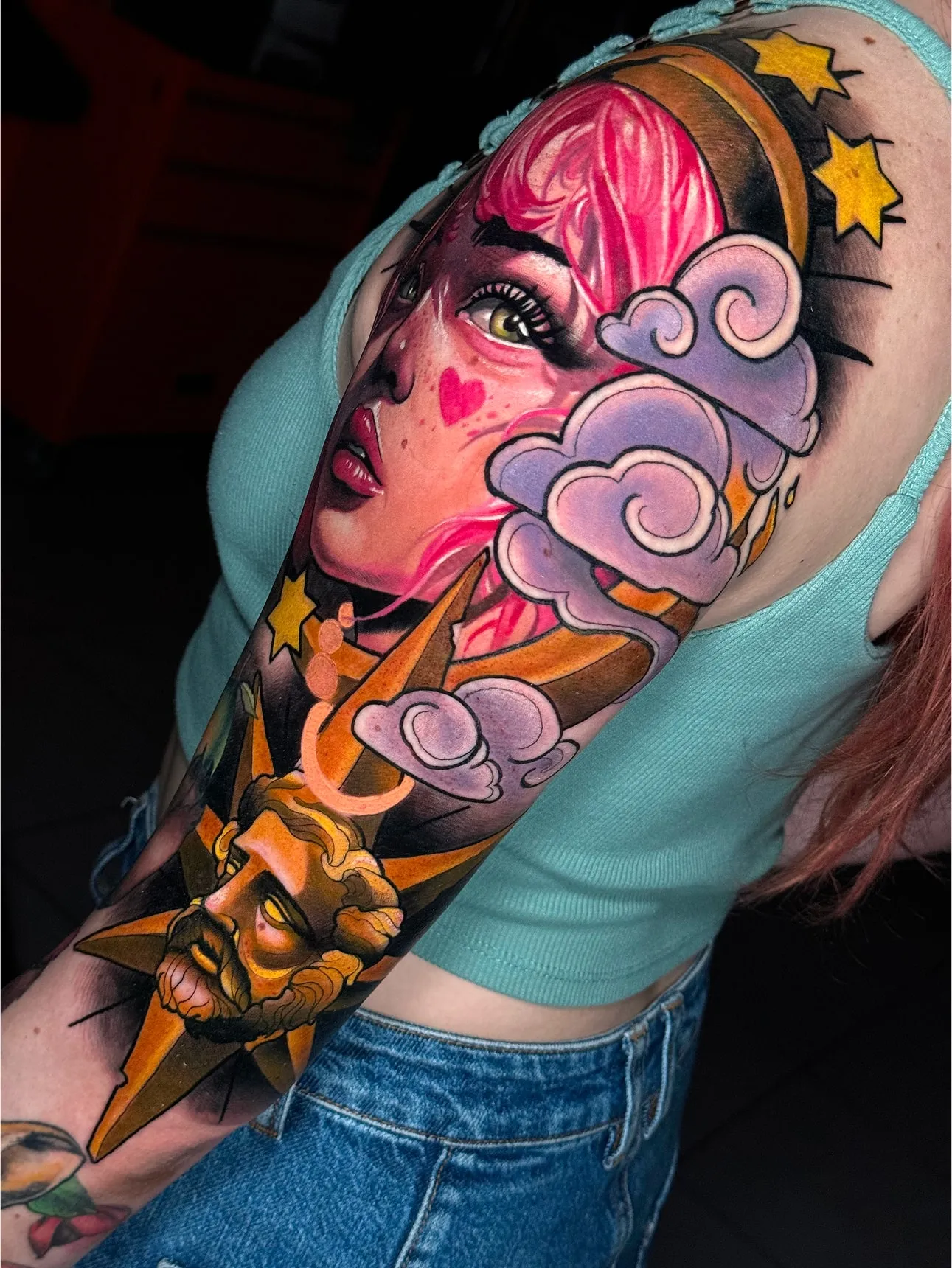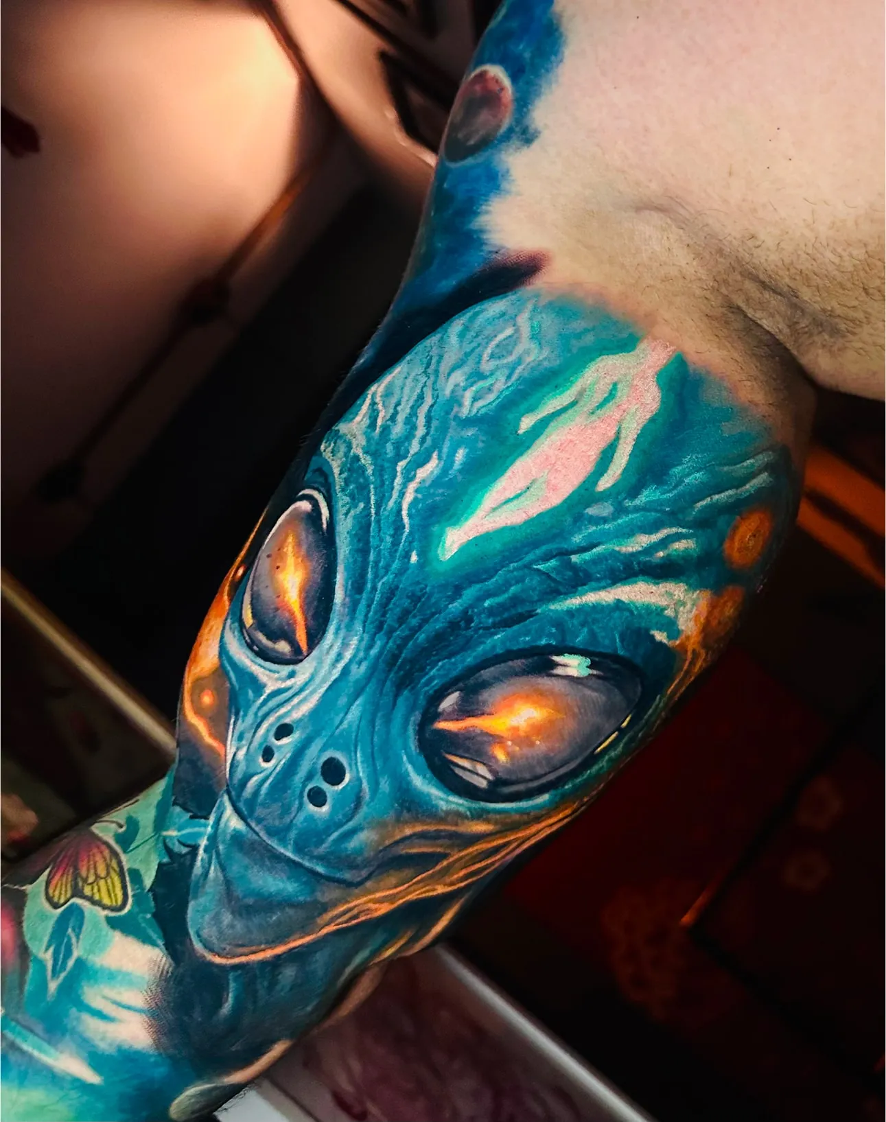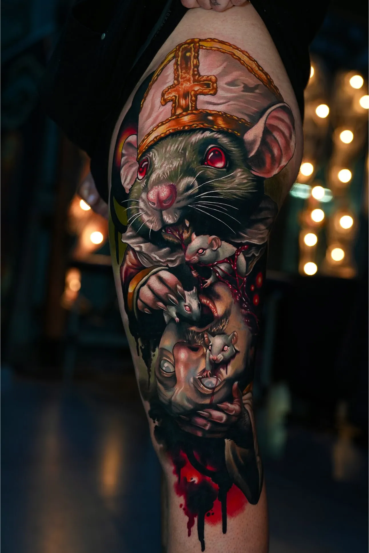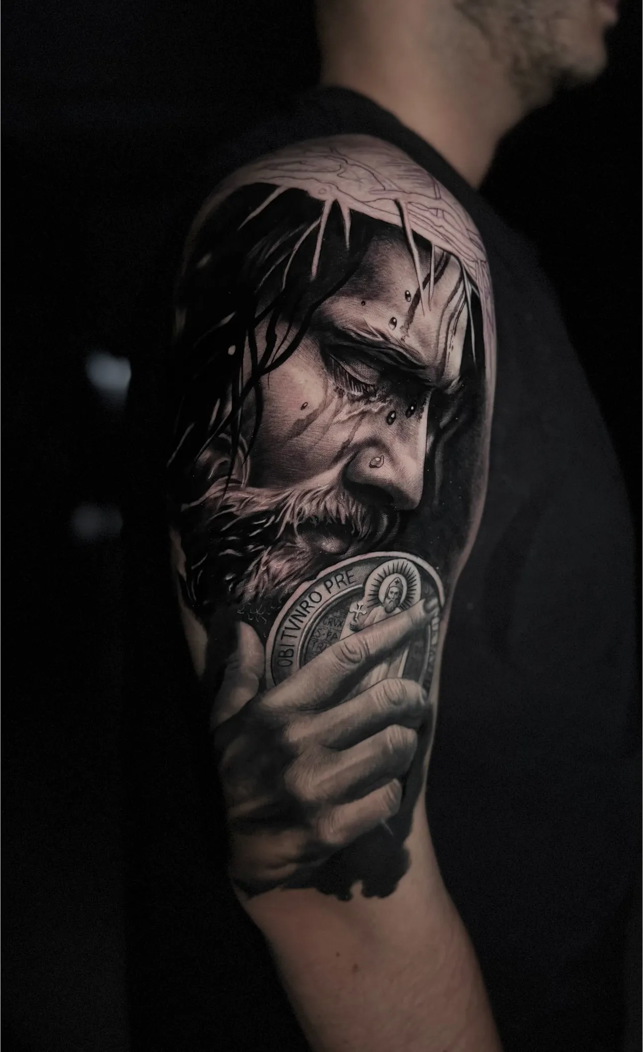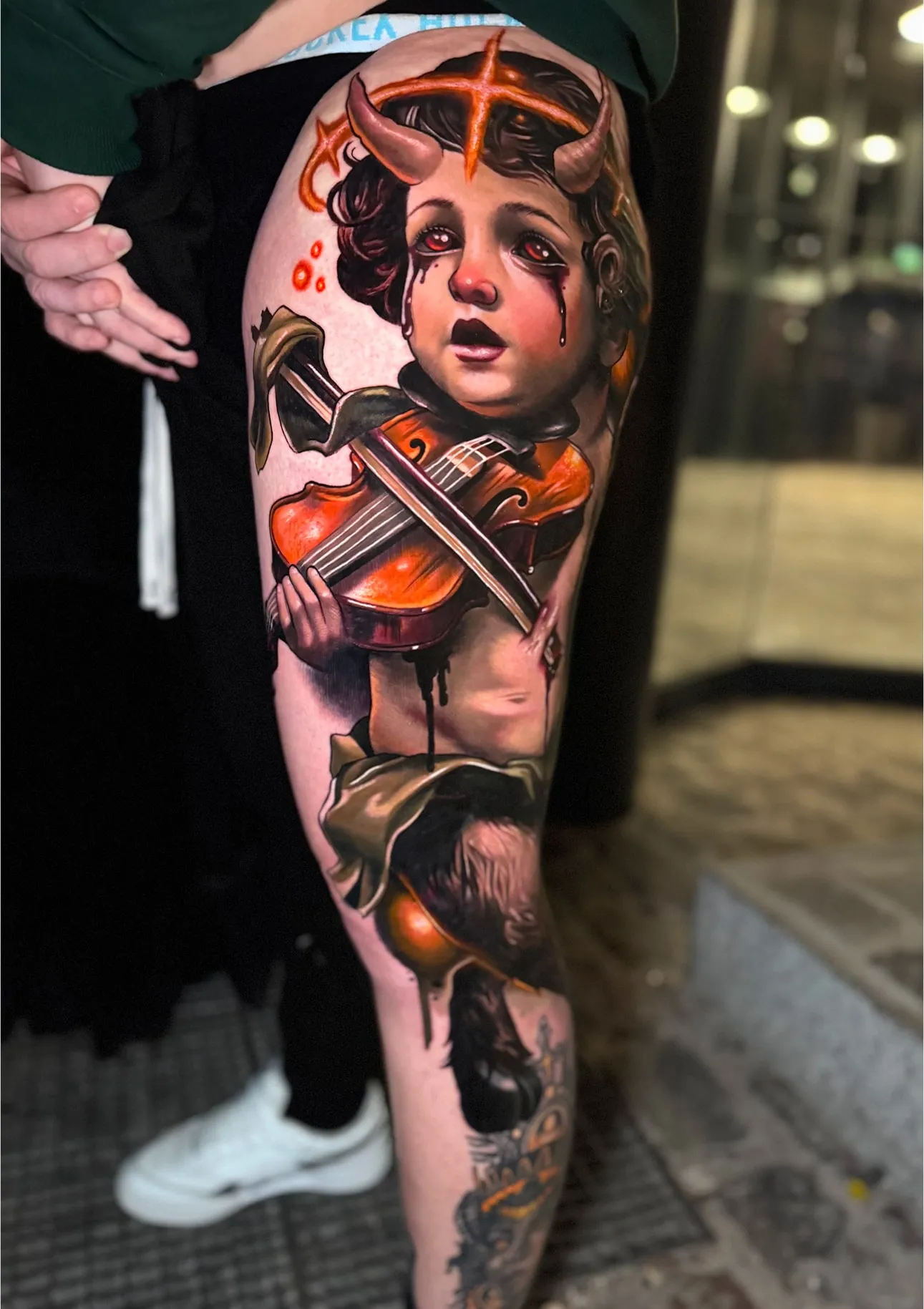 Today, my style has evolved into a unique fusion: horror-inspired compositions influenced by Renaissance art, executed with realistic techniques but infused with the expressive freedom of new school. This evolution reflects not only my artistic growth but also my creative vision.