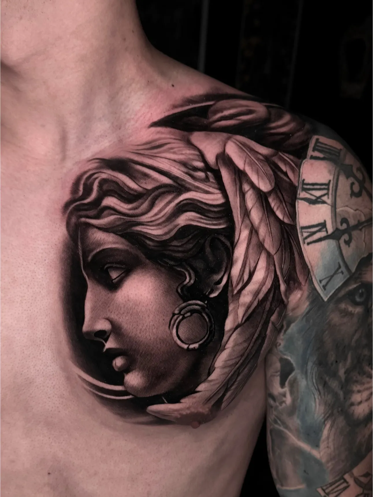 My professional journey has been defined by a constant search for graphic identity. I had the privilege of starting during a time when tattooing involved a wide range of styles, allowing me to explore everything from black and gray realism to color realism, oriental styles, new school, and advanced linework. Those first four years were essential in building a strong and versatile foundation as an artist.